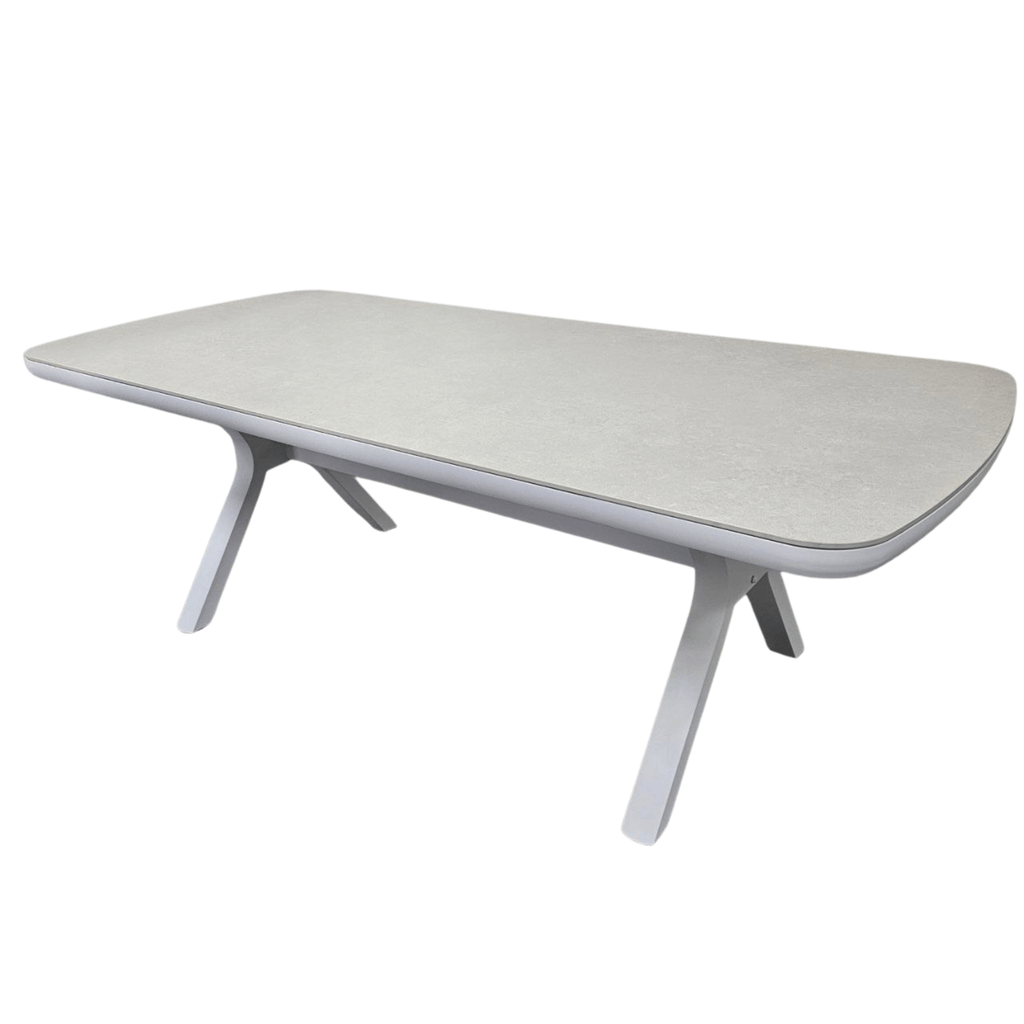 Crafted with a striking white aluminium frame and distinctive cross-braced base, the Ashton delivers both architectural presence and unwavering stability. The cream sintered stone top is your silent partner through Brisbane's subtropical seasons, impervious to our intense summer UV, resistant to sudden storm splashes, and unfazed by hot serving dishes straight from the barbecue.