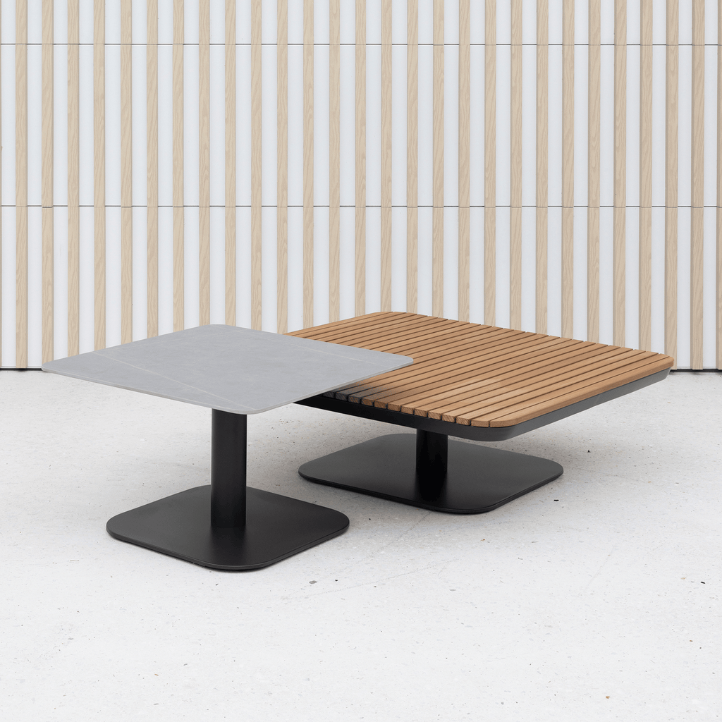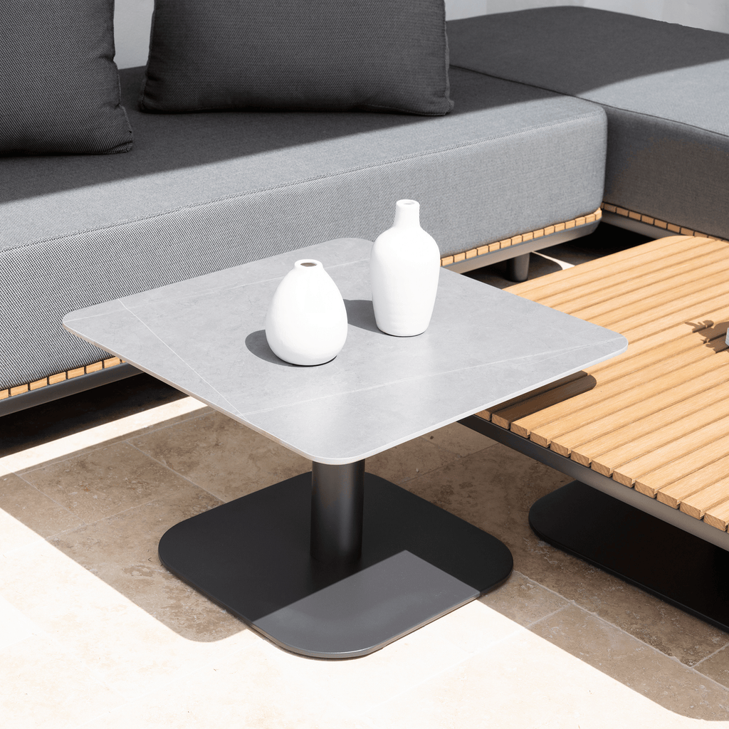 The New Wave Occasional Table is designed to complement lounge chairs, settings, and sunlounges, sitting at a versatile 37cm high for easy reach from any low seat. The sintered stone top brings a sophisticated, natural stone aesthetic with exceptional durability, set on a modern charcoal powder-coated aluminium frame built for year-round outdoor use.