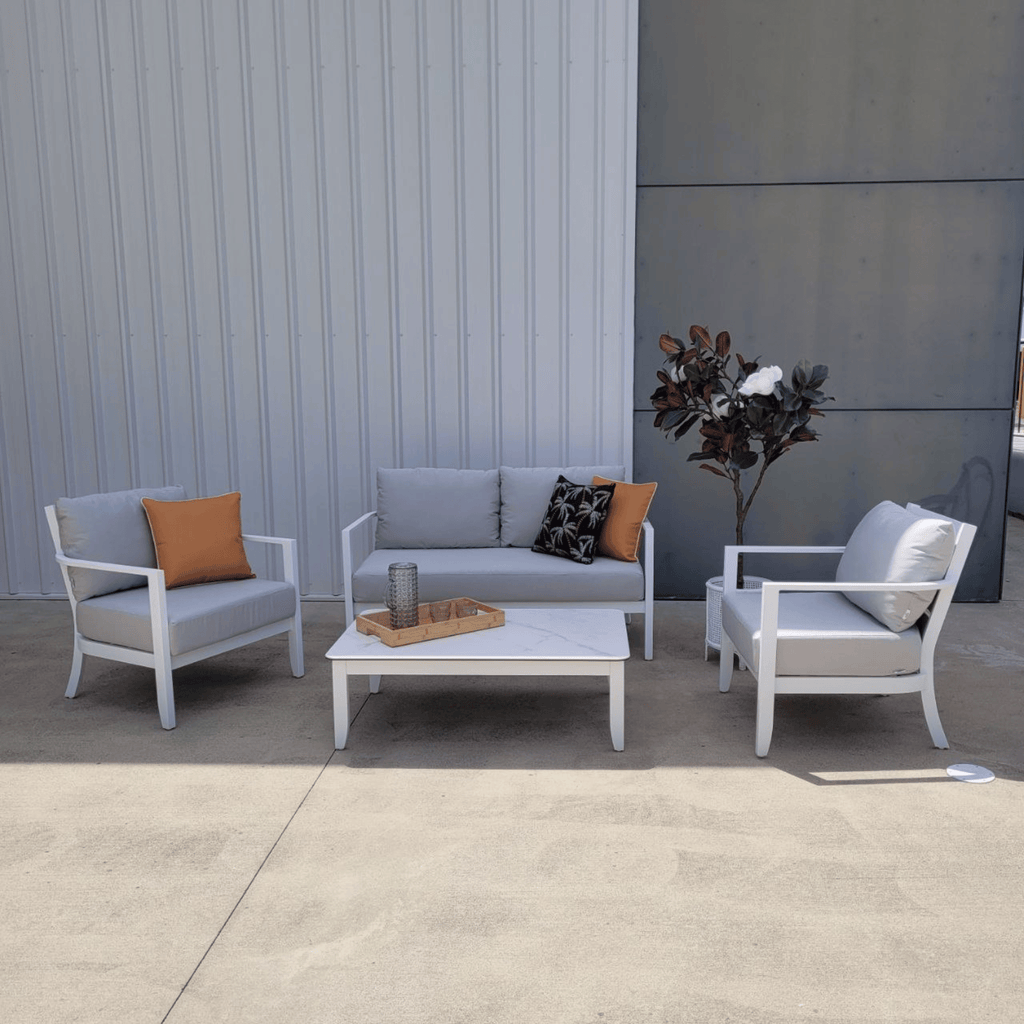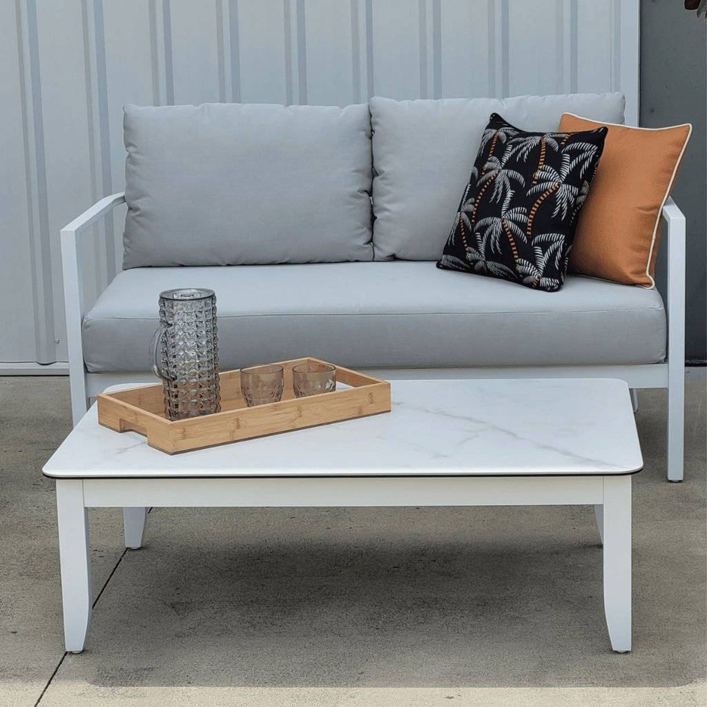 Whether you're hosting weekend gatherings or creating a quiet retreat, the Saratoga adapts beautifully. The ceramic coffee table top is heat-resistant, easy to clean, and sophisticated enough to elevate your entire outdoor aesthetic.