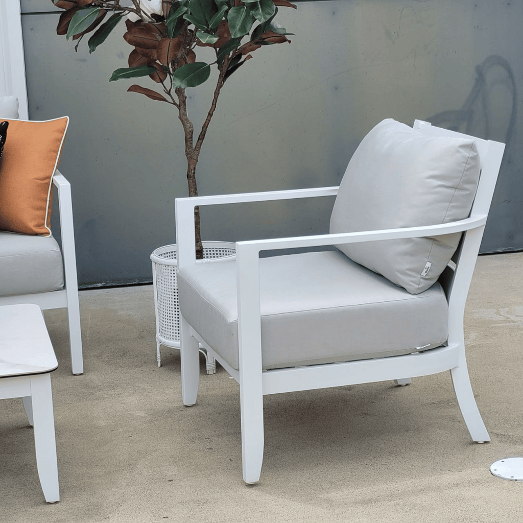 The Saratoga features a powder-coated aluminium frame in pristine white—no rust, no corrosion, no compromise. Just enduring beauty that stands up to whatever Brisbane weather delivers. Also available in a sophisticated charcoal frame for those who prefer a contemporary edge.
